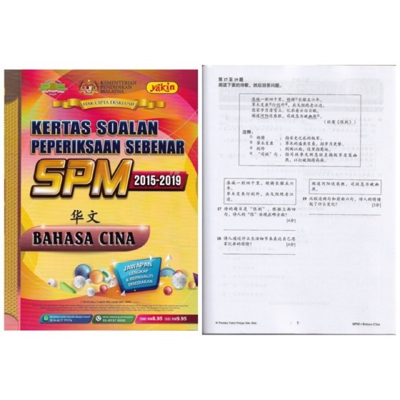 Yakin Kertas Soalan Peperiksaan Sebenar Spm 2015 2019 Bahasa Cina 华文 New Pgmall